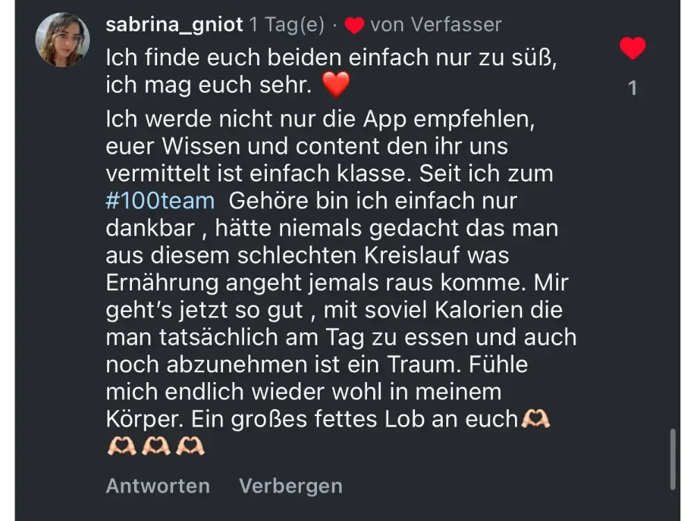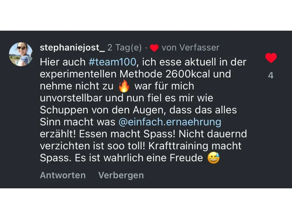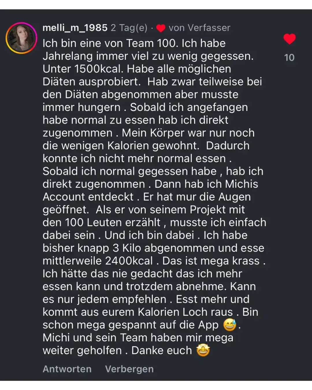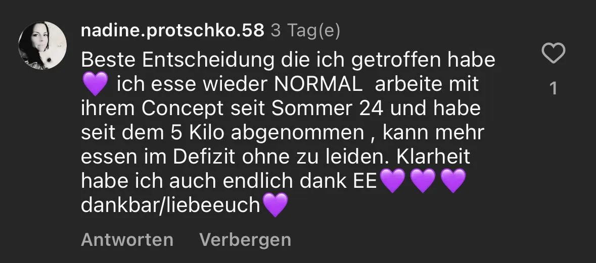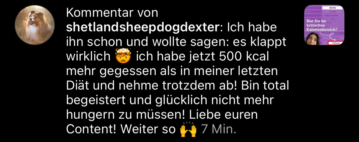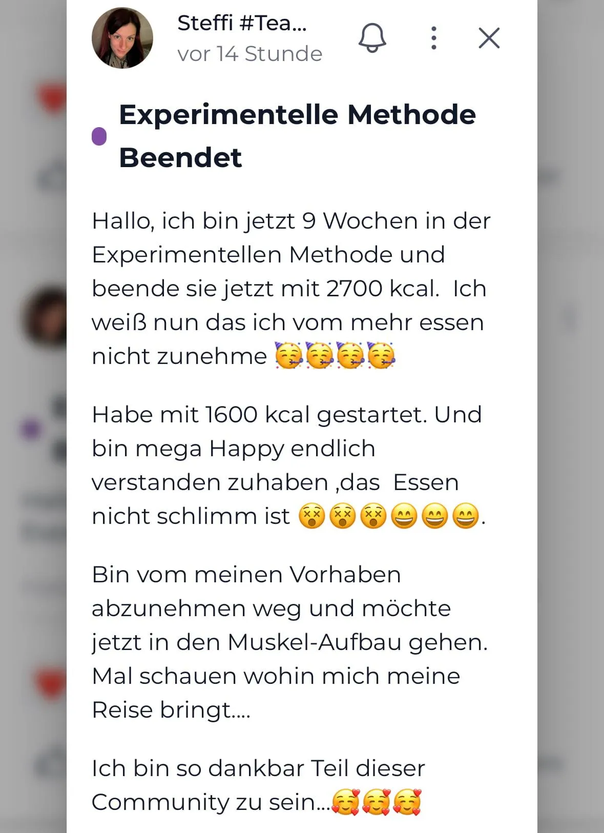 Einige schreiben uns sogar, dass sie vergessen haben zu essen, weil Kalorien und Verzicht nicht mehr die Hauptrolle in ihrem Leben spielen.