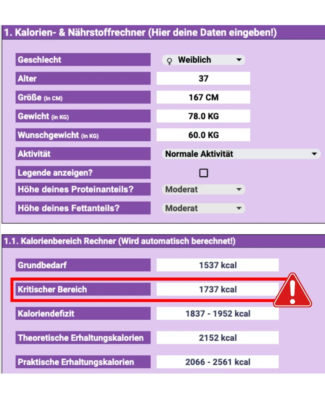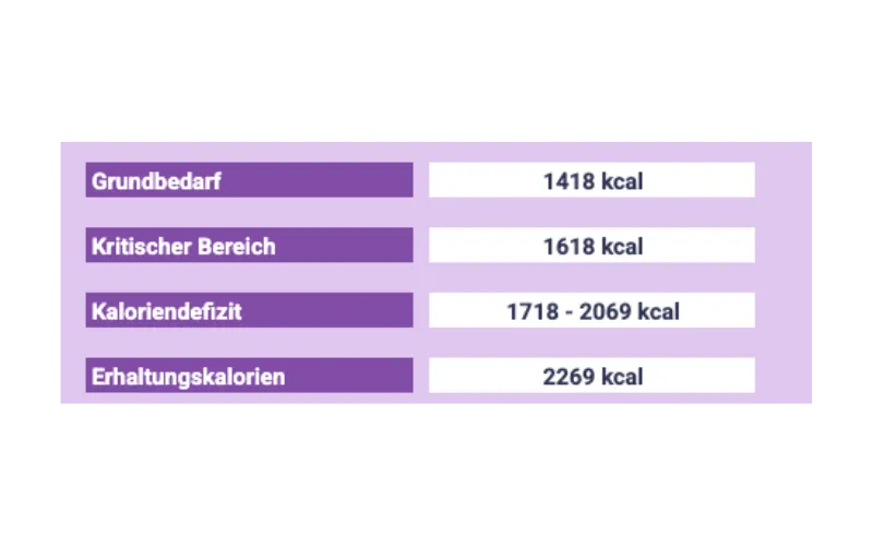 Ihr kritischer Bereich liegt bei ca. 1700 Kalorien.