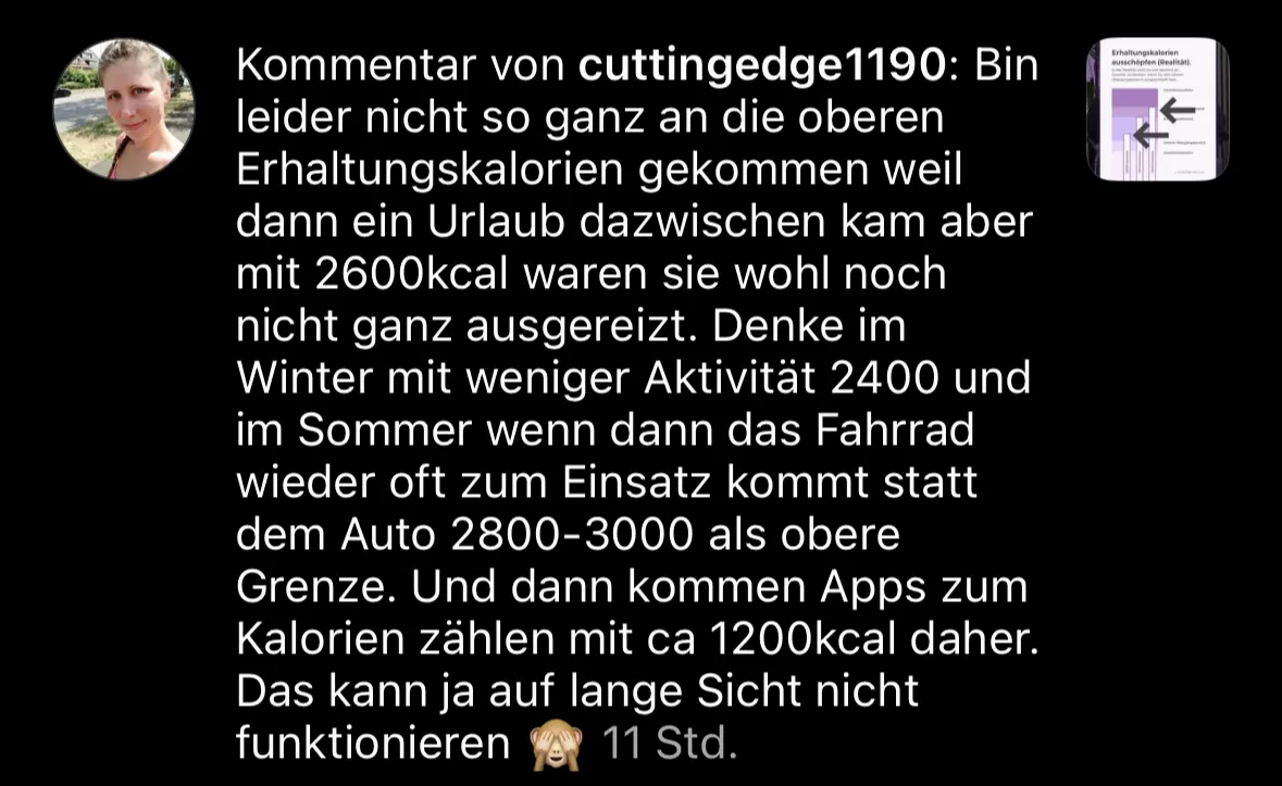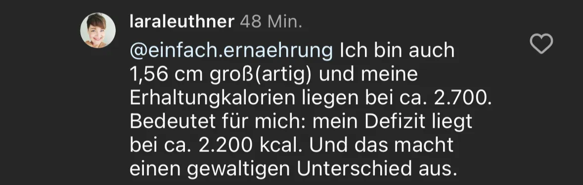 „Mein Erhalt liegt bei 2700 und mein Defizit bei 2200 Kalorien“