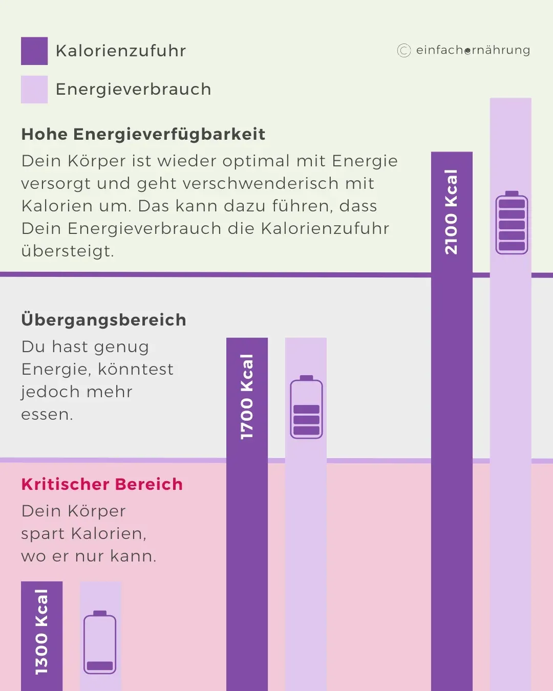 Erhöhst Du Deine Kalorienzufuhr, steigt Deine Energieverfügbarkeit – und Dein Körper beginnt, wieder mehr Energie zu verbrauchen.