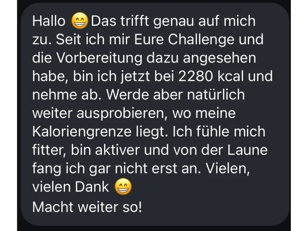 ✅ Du hast eine Kalorienzufuhr, die perfekt zu Deinem Körper passt.