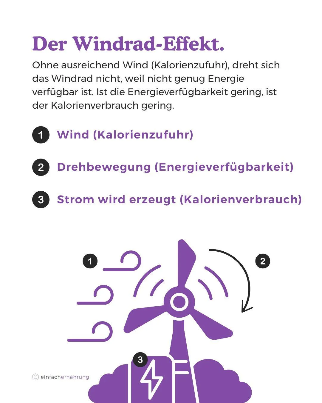 Er merkt, dass zu wenig Energie (Kalorien) verfügbar ist – also beginnt er, sie zu sparen, wo er nur kann.