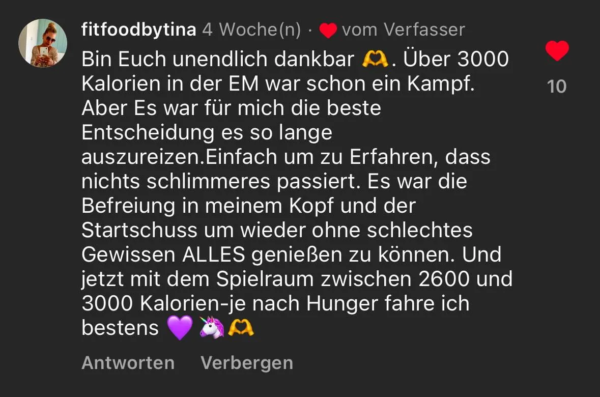 „3000 Kalorien waren die Befreiung in meinem Kopf, um wieder ALLES ohne schlechtes Gewissen genießen zu können.“