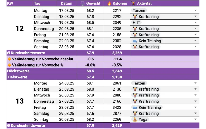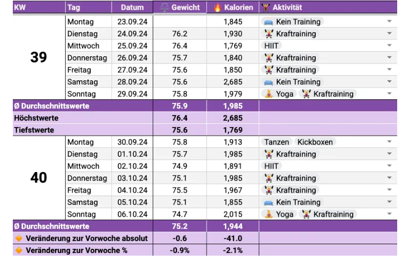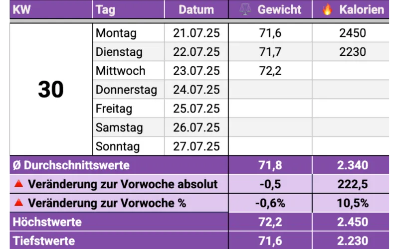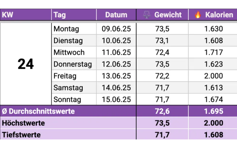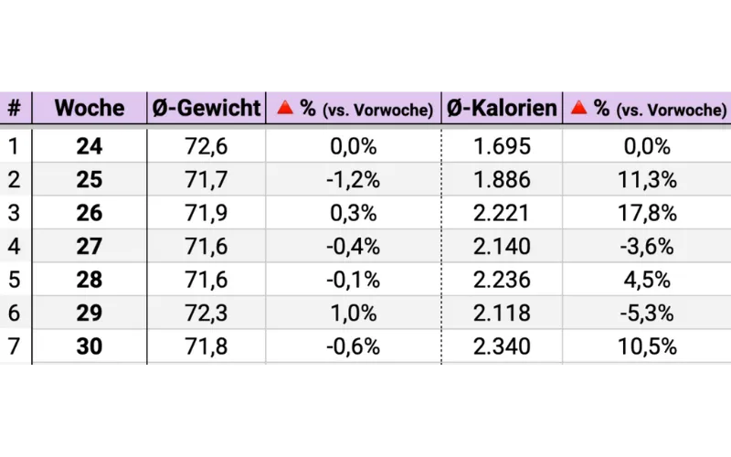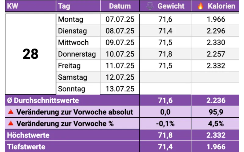Heute: 2600 Kalorien, keine Symptome mehr, volle Leistung im Training – und trotzdem geht das Gewicht runter.