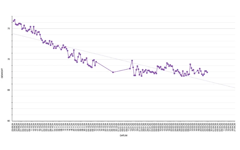 Um noch Gewicht zu verlieren, müsstest Du Deine Kalorien in den kritischen Bereich senken – und genau das ist das Problem.